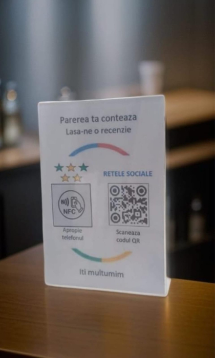 Produse similare: Stand QR + NFC 21x15 cm – Flexibilitate maximă. Sticker NFC + QR – Variantă compactă.